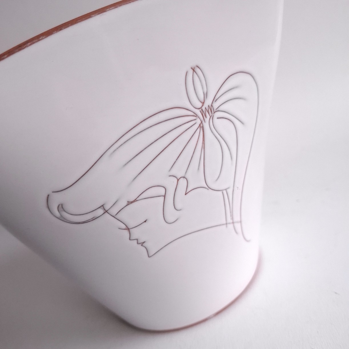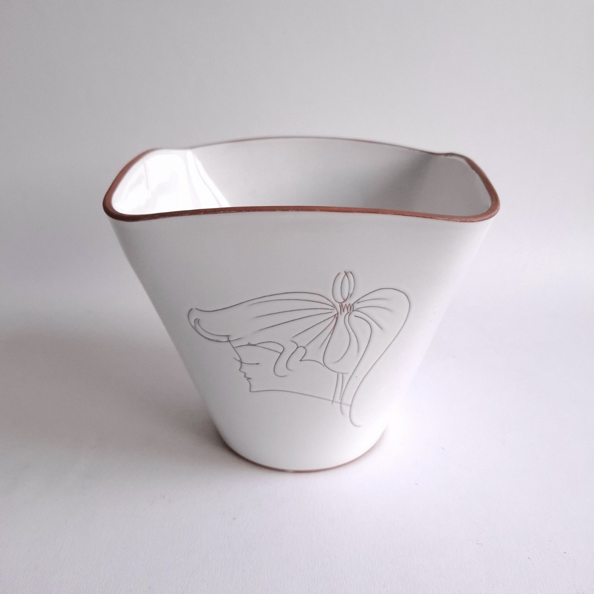 Deze bloempot met leuk meisjeshoofd afbeelding is in goede vintage staat.