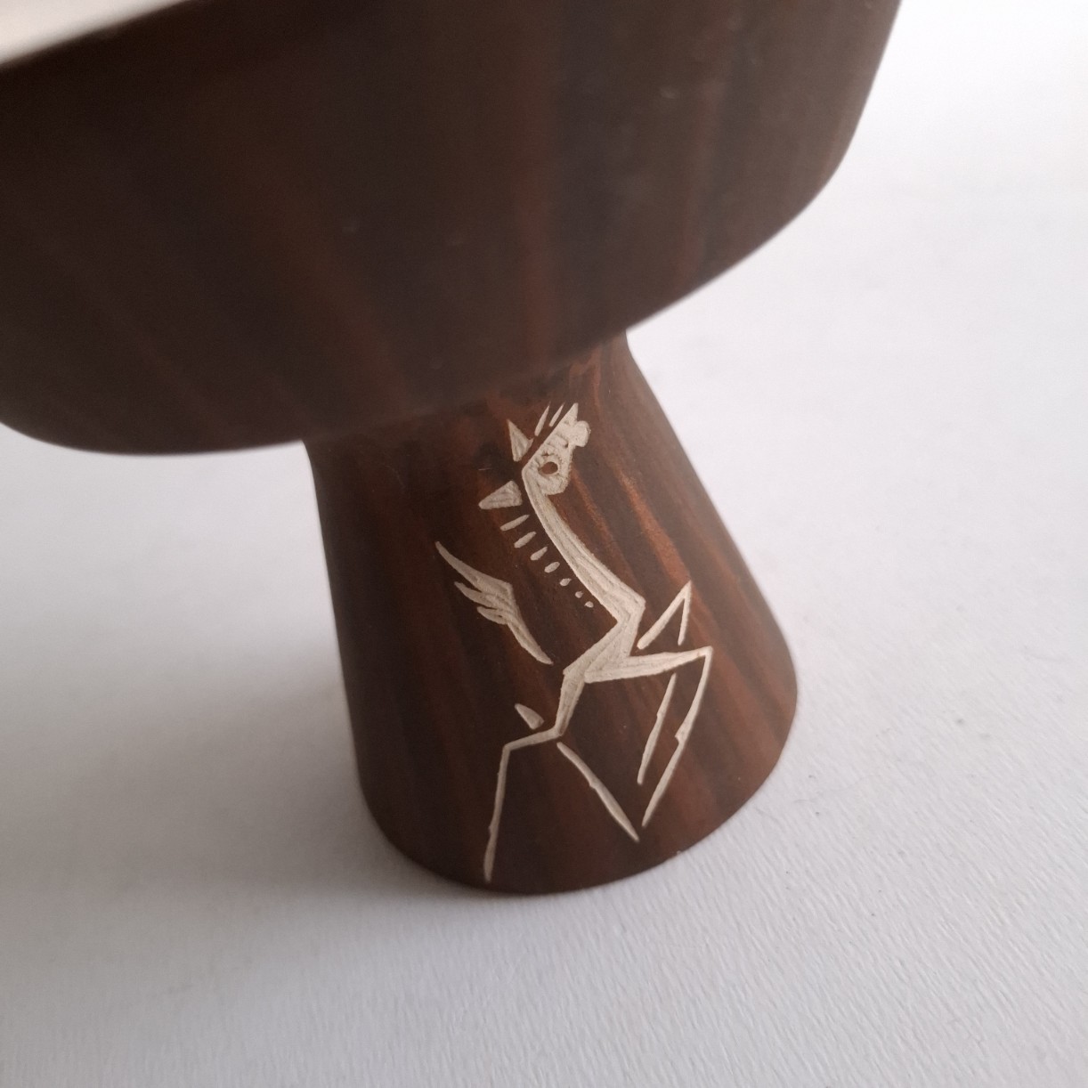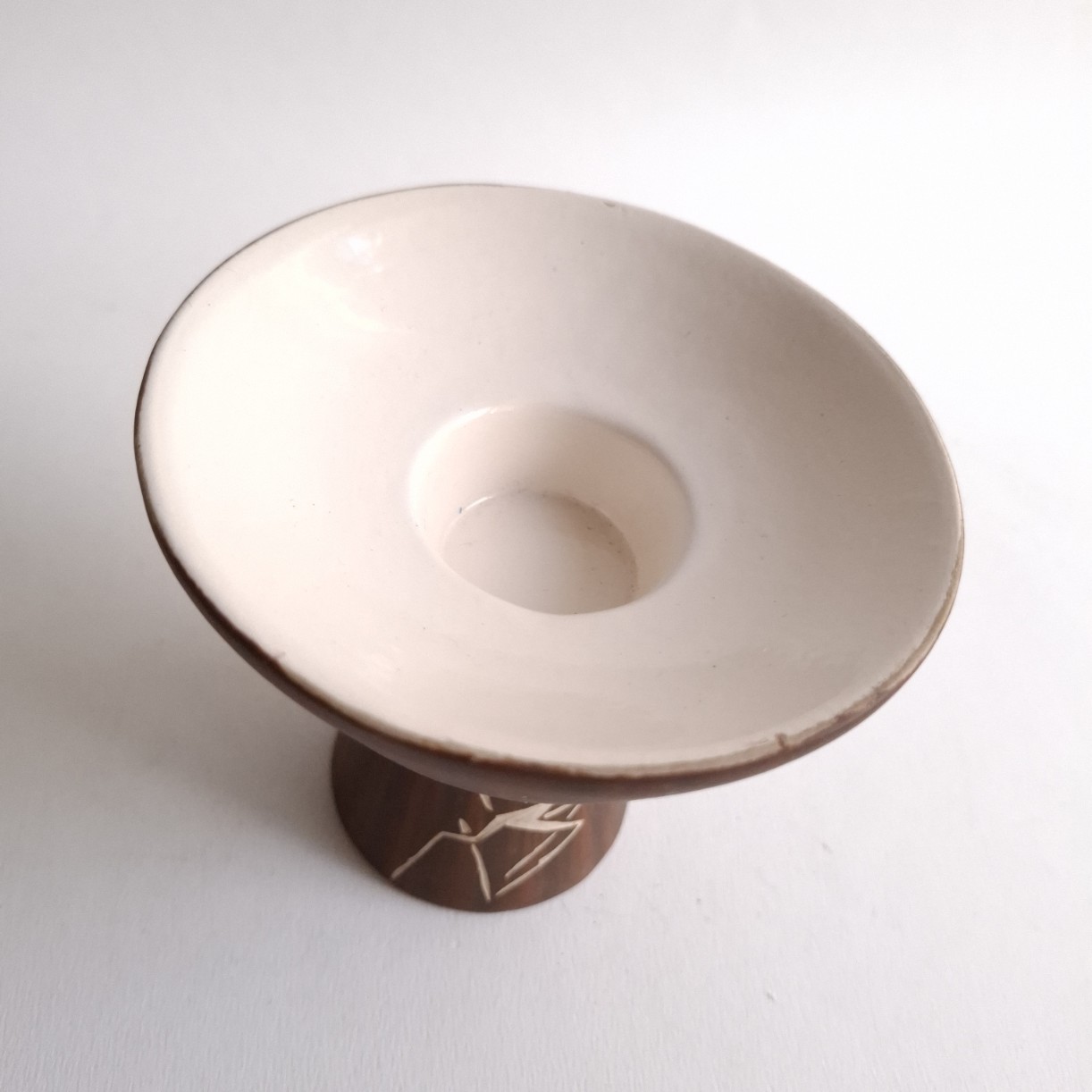 Deze l' Ancora kaarsenstandaard In kerateak stijl (Palissander) met wit glanzende bovenzijde en mooie hert afbeelding is in vrij nette vintage staat.