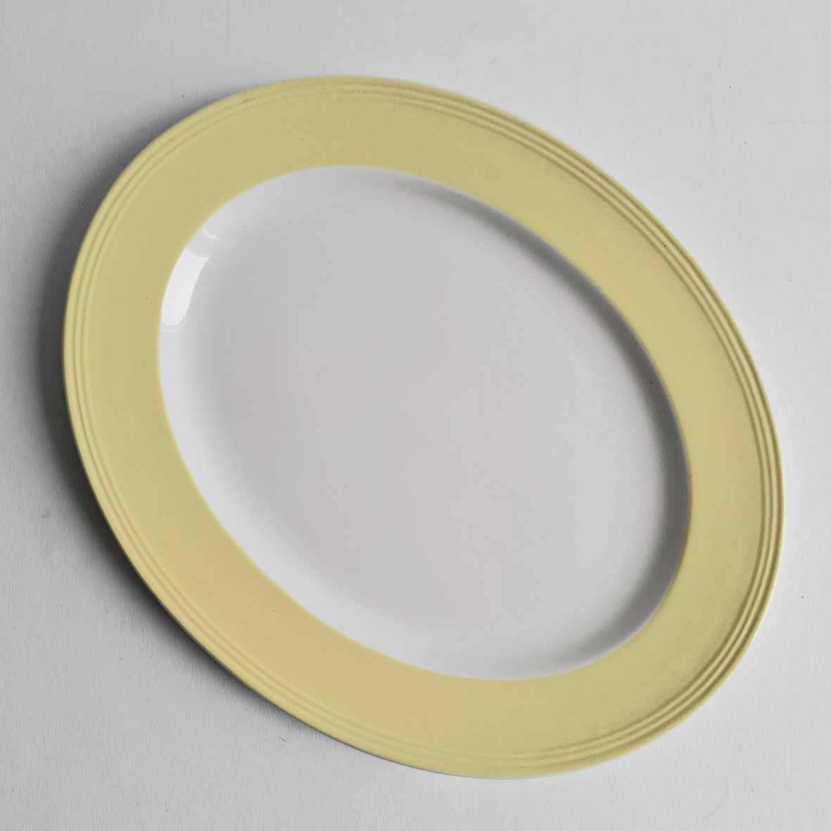 Deze mooie “Boch” schaal met gele rand is in goede vintage staat.