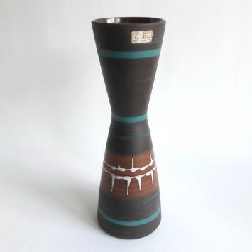 Deze mooi gedecoreerde Duitse vaas in diabola vorm is vervaardigd door Carstens Tonnieshof, en is in vrij goede vintage staat. Enkel wat minimale beschadigingen onder aan de rand.