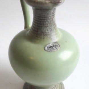 Dit licht groene vaasje met Jasba sticker is in nette vintage staat.