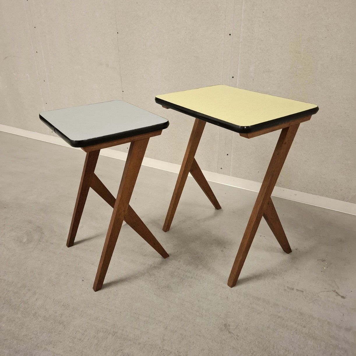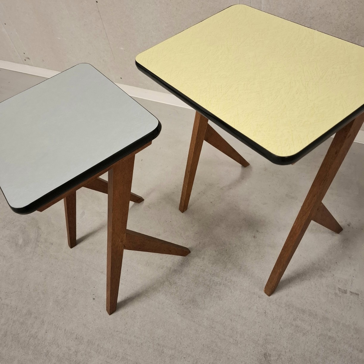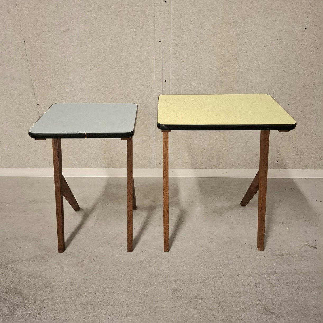 Leuke set van twee bijzettafeltjes uit de jaren 60.