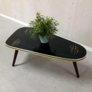 Zeer mooie langwerpige plantentafel met glas motief blad uit de jaren 50/60.