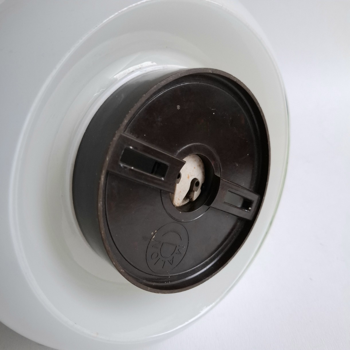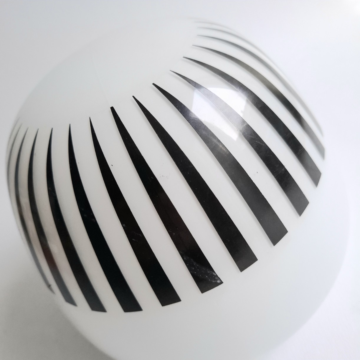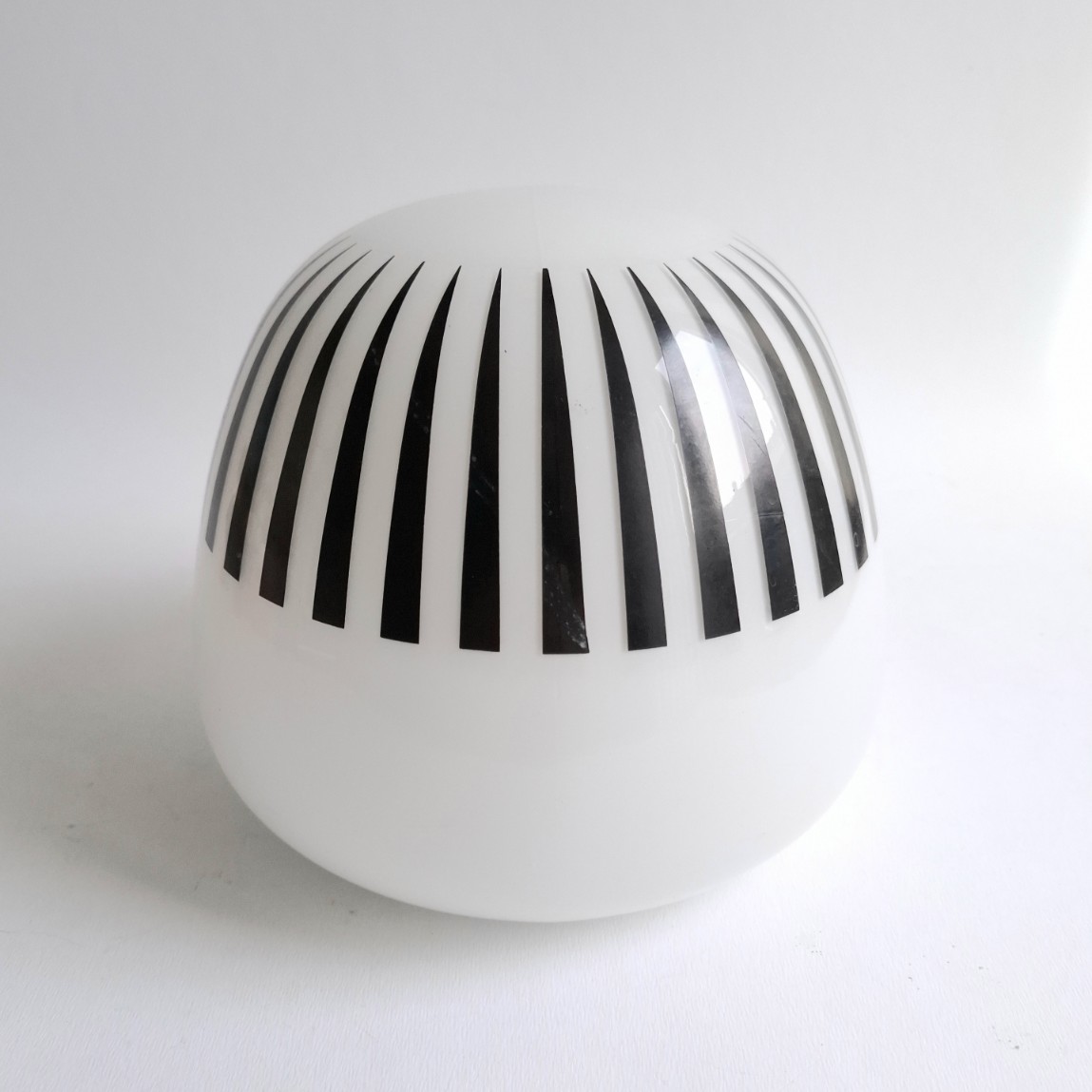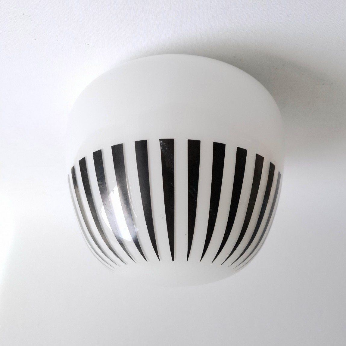 Deze mooi vormgegeven plafondlamp met zwarte lijnen print komt met de originele bakelieten plafondbevestiging