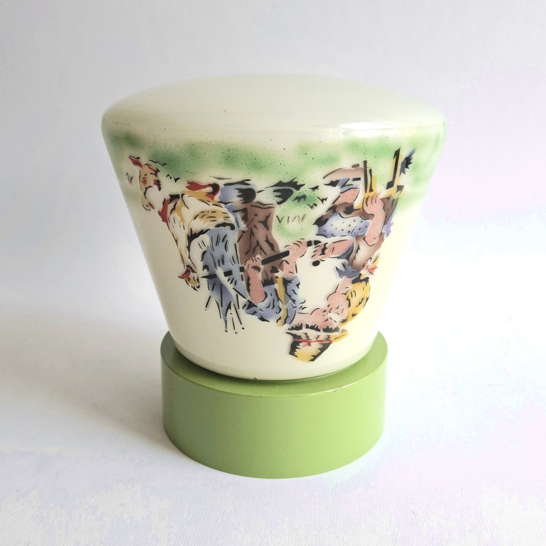 Mooie met “spelende kinderen” afbeelding gedecoreerde jaren 50 plafondlamp.